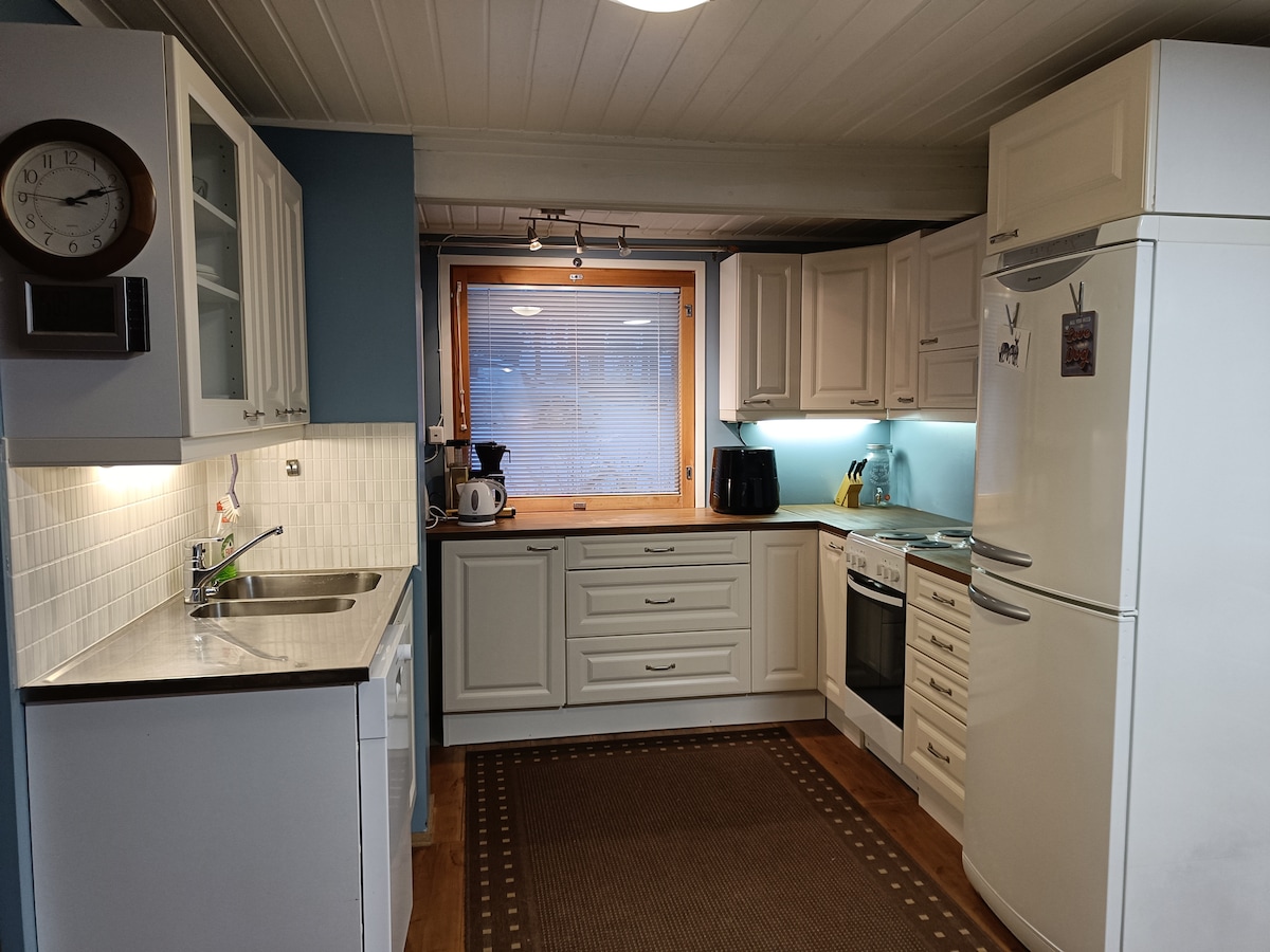 Apartemen studio di gedung garasi, dengan dapur kecil yang dilengkapi dengan dua kompor, kulkas, microwave, mesin pembuat kopi, ketel, dan peralatan makan dasar. Seprai dan handuk disediakan. Mandi di toilet, perhatikan pemanas air 30 liter, ada cukup air panas selama sekitar 5 menit. Mobil bisa diisi daya atau dipanaskan dari soket dinding. Oven dan mesin cuci piring tidak ada. Pemesanan instan, kalau kamu bisa memesan, kamu bisa menginap tanpa balasan dariku Lokasi pusat yang bagus. Ke jalan 86 10 km, ke jalan 4 arah 50 km, ke jalan 8 50 km, ke Helsinki 530 km dan Levi 480 km.