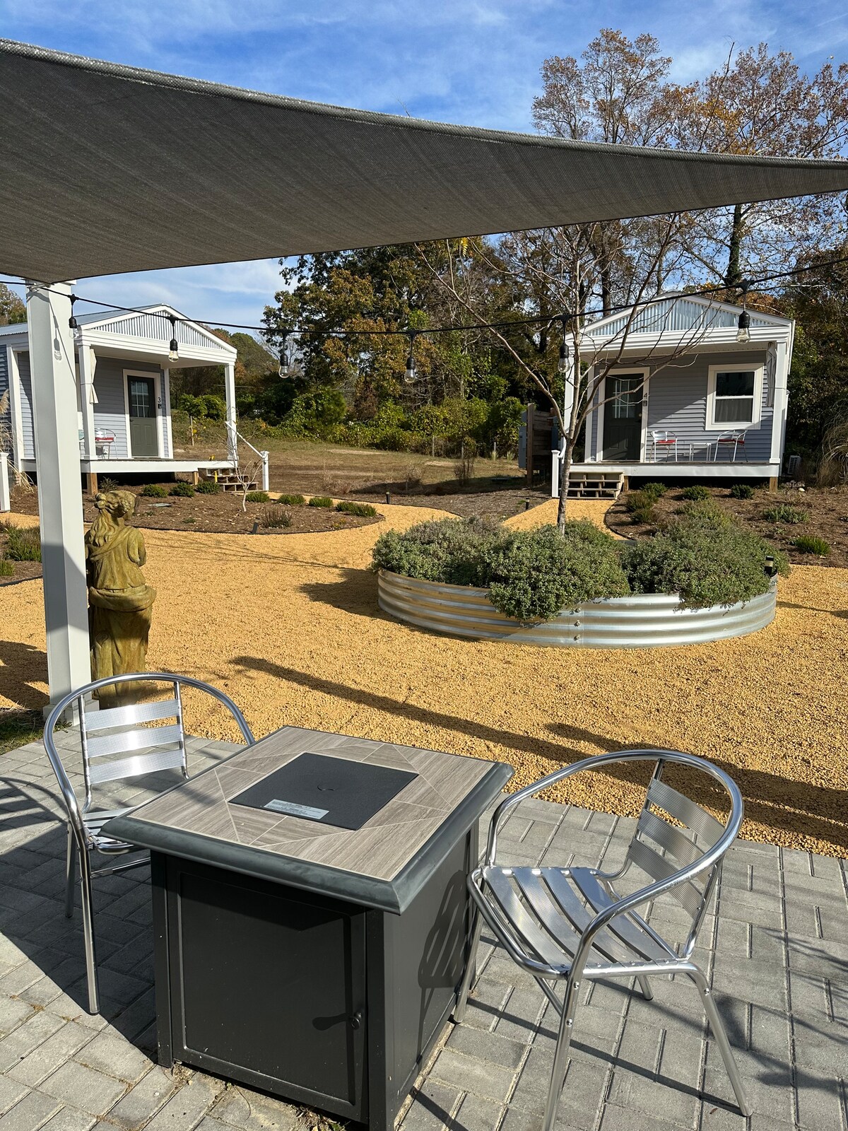 Rumah kecil dengan area duduk luar ruangan