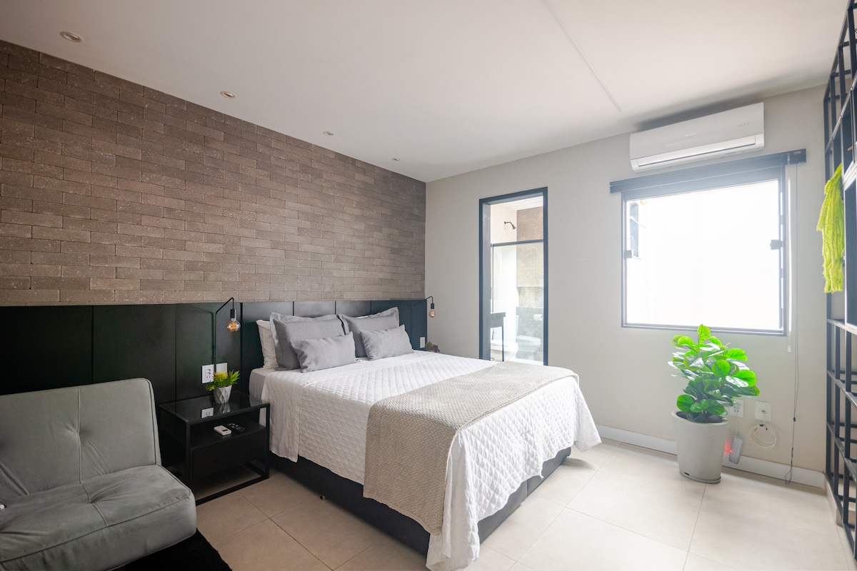 Temukan pengalaman unik di studio kompak, direnovasi sepenuhnya dalam standar Retrofit, yang dapat menampung hingga 3 tamu dengan nyaman. Tempat ini identik dengan kenyamanan, dengan tempat tidur dan seprai mandi dalam standar hotel dan banyak teknologi. Terletak di jalan yang tenang di pusat kota, Anda hanya beberapa langkah dari Cadima Shopping dan Superpão Bakery dengan akses mudah ke semua kemudahan. Selamat datang di rumah Anda yang jauh dari rumah!