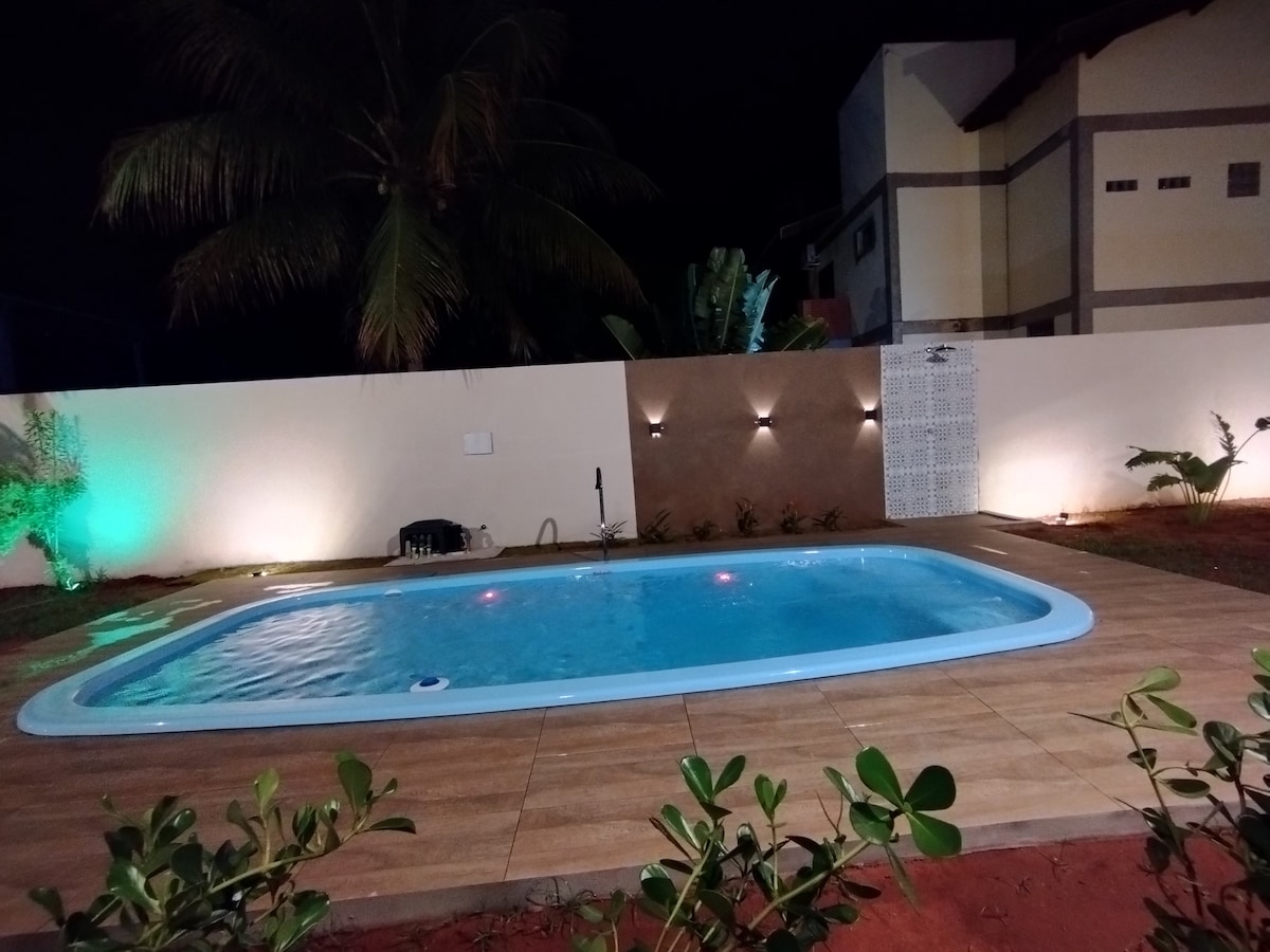 Tempat istimewa (pusat berikutnya) di samping hutan barak, cocok untuk hiking🚶♂️🚶♀️! Lingkungan yang nyaman, bersih, tenang dan aman, kondominium tertutup. dengan kolam renang dan area luang. Ruang garasi tertutup. Semua kamar tidur/ruang tamu ber - AC, dapur yang direncanakan dan semua dilengkapi🫕 dengan semua peralatan rumah tangga baru. Wifi eksklusif Smart 55"eTV dengan SKy disertakan📽 🎬. Kami sangat suka bepergian dan akan menyambut Anda dengan cara yang dipersonalisasi dan keramahtamahan😊.