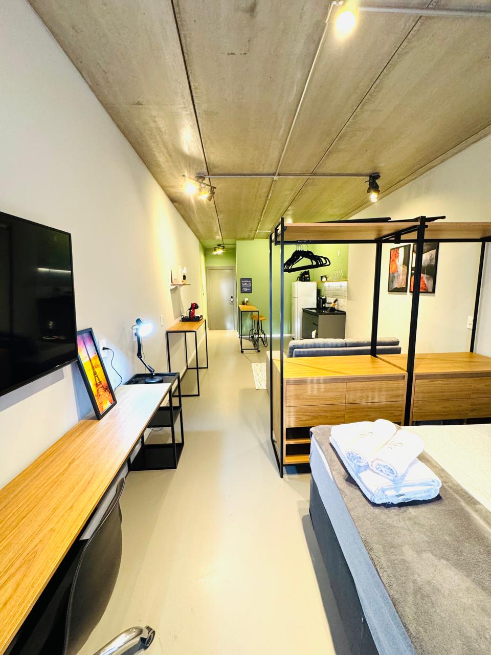 Setin Midtown campinas menanti Anda. Apartemen bergaya studio kami memiliki luas 45m2 dengan konsep terbuka sepenuhnya, lengkap dengan peralatan makan, dengan AC, semua fasilitas yang ingin Anda miliki di penginapan Anda dikombinasikan dengan dekorasi modern. Kami memiliki garasi pribadi, concierge 24 jam, dan "pasar ". Kami berjarak 10 menit dari bandara Vircopos, 5 menit dari Royal Palm Eventos.