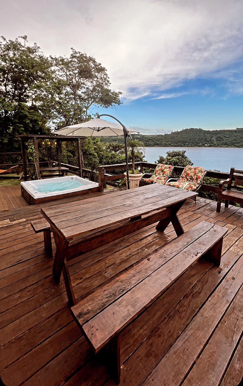 Lakefront retreat for unforgettable days. Two-story home facing the lake, with stunning views and sunrise reflecting on the water. Jacuzzi for up to 7 guests with a privileged view. Private lake access for swimming and outdoor fun. Air conditioning in all rooms. Perfect to relax, breathe fresh air and create special memories.