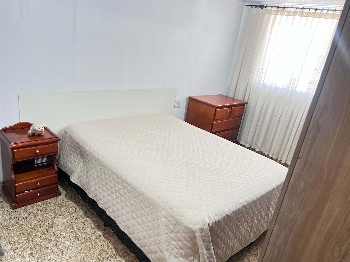 Nikmati pengalaman bergaya di tempat yang berlokasi strategis ini, distrik Santa Clara, di samping stasiun bus. Dekat dengan segalanya, supermarket, toko roti, dll. 2 kamar tidur dengan double bed, TV dan AC. Ruang tamu yang didekorasi dengan indah dengan sofa, 6 meja kursi, dan AC. Dapur berperabot lengkap, kompor kompor, air fry, microwave, dan semua peralatan makan.