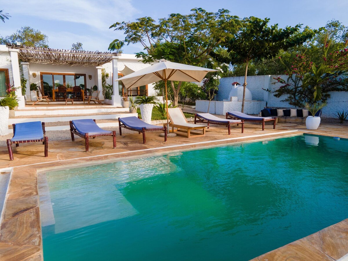 Berliburlah di rumah pantai 4 kamar tidur kami di Matemwe, Zanzibar. Terletak di taman yang subur tepat di pantai berpasir putih yang masih asli, tempat ini menawarkan pemandangan laut yang menakjubkan, perairan berwarna biru kehijauan, dan kehidupan laut yang semarak hanya beberapa langkah saja. Nikmati kolam renang pribadi, dapur & area tamu yang luas, TV, internet, listrik & keamanan 24/7. Dengan permainan bola voli pantai, dart, dan tempat duduk luar ruangan, tempat ini sangat cocok untuk keluarga & teman yang mencari kesenangan dan relaksasi di tepi laut.