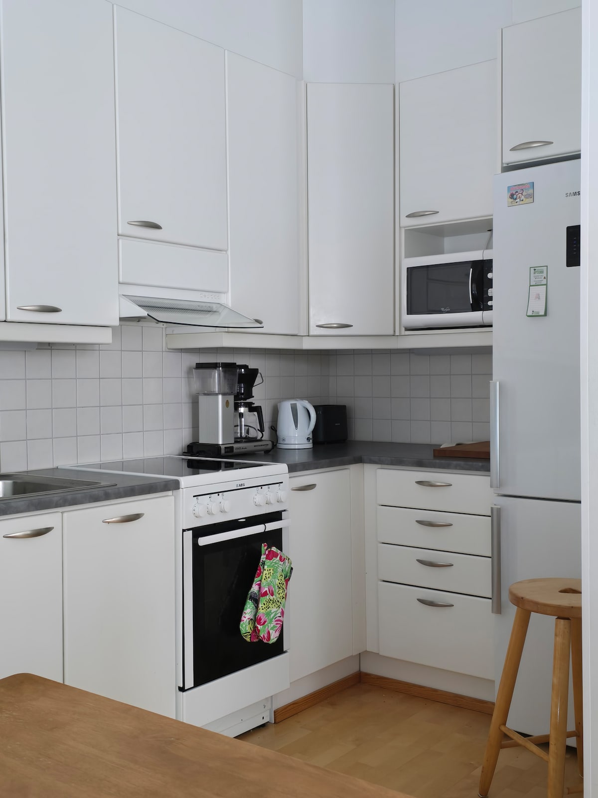 Apartemen ini memiliki dapur - ruang tamu, termasuk toilet. Fasilitas memasak (piring yang digunakan), pembuat kopi, microwave, ketel, pemanggang roti, freezer kulkas. Kopi, teh, gula, dan garam tersedia untuk digunakan :) Tempat tidur termasuk. Dalam MH, hanya tempat tidur lebar 160cm. Oh, sofa yang bisa dibentangkan. Untuk keluarga dengan anak - anak, kursi makan bayi, tempat tidur bayi, toilet, dan bak mandi anak - anak. Pemanas / pendingin dengan pompa panas sumber udara. TV layar datar Termasuk wifi /internet serat optic tetap.