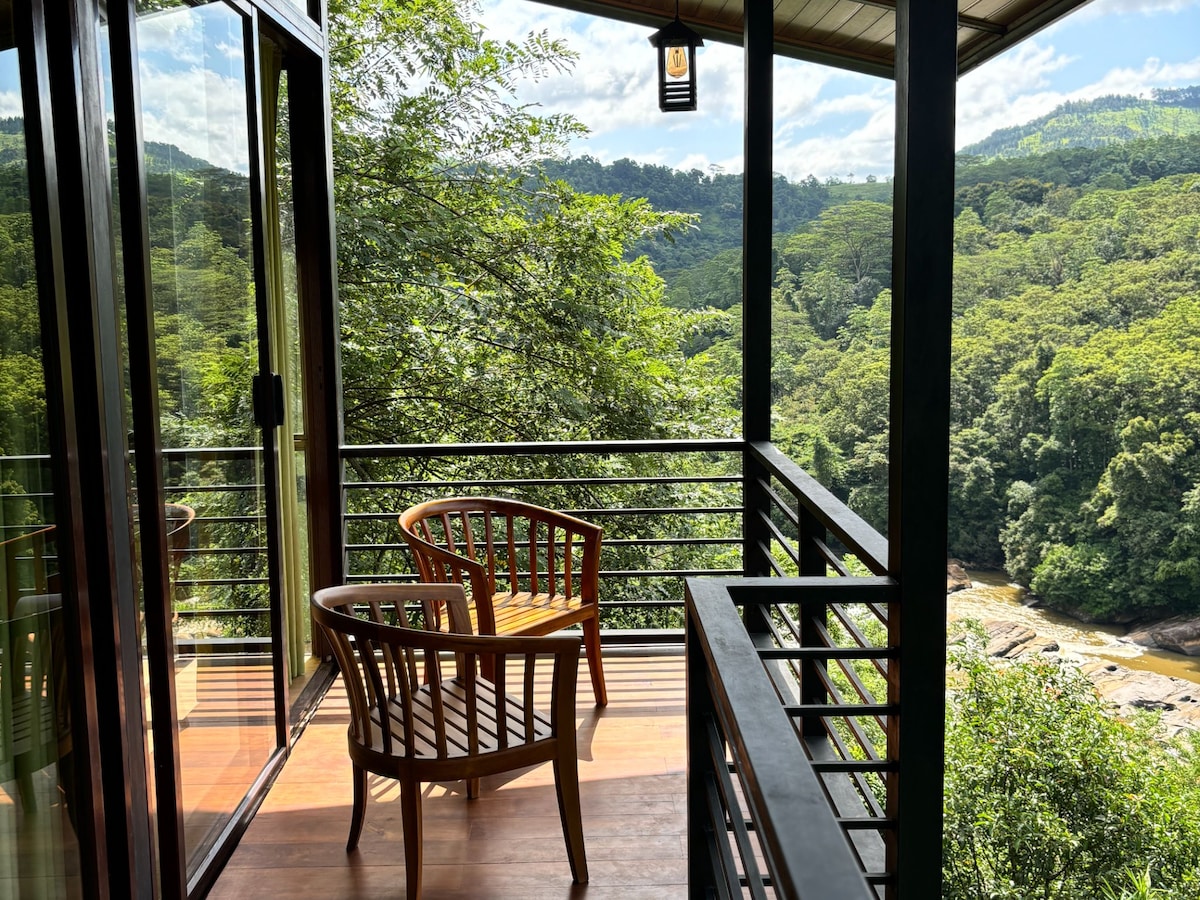 Escape to Aqua Pavilion at Kandy Victoria Eco Resort, one of the best boutique hotels in Kandy, Sri Lanka. This luxurious room features a private balcony and a chill tub, offering stunning views of Victoria Reservoir and lush mountains. Enjoy the perfect blend of traditional and modern architecture, complimentary breakfast, and serene surroundings in a calm residential area. Guided hikes, free bicycles, and personalized service complete your unforgettable stay.