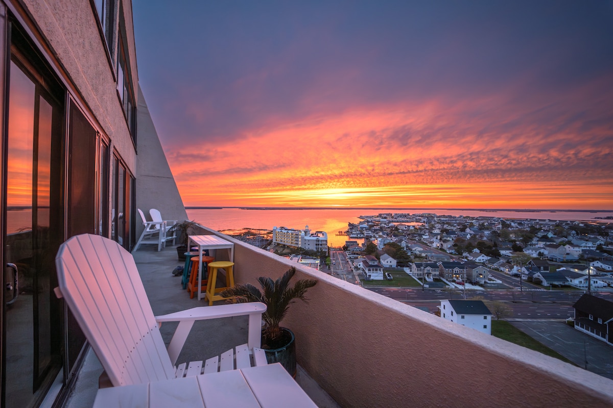 Bersantailah dan bersantailah di tempat yang tenang dan bergaya ini. Kondominium satu kamar tidur ini adalah tempat yang sempurna untuk 1 -2 pasangan, atau keluarga. Anda memiliki pemandangan pantai dari lantai ke langit - langit, ditambah matahari terbit dan terbenam yang menakjubkan dari dua balkon terpisah. Dapur ini dilengkapi dengan baik untuk memasak setiap kali makan, atau makan di banyak restoran di Ocean City. Penginapan Anda juga dilengkapi dengan 4 tiket masuk kolam renang untuk mengakses kolam renang luar ruangan musiman di lokasi (dapat dilihat dari unit) dan akses ke lapangan tenis/pickleball gedung!