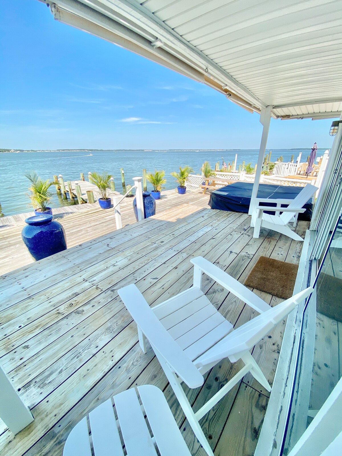 After relaxing at the beach (just a 7 min walk away), unwind on our deck "watchin' the tide rollin' away!" Get the best of the bay & the beach with this dog-friendly hidden gem! Imagine evenings enjoying the bay breeze as you crack crabs on the deck! Relax inside our open-concept great room that allows everyone to be together. Fish on our private dock or use it for your own boat or jet-ski to dock there. Witness spectacular sunsets with our Kayaks. Enjoy a well lit, private work space to virtual work w/ high speed internet! A new wood CRIB now in master suite for restful sleep! The pools and tennis/pickleball courts are only a few blocks away for your enjoyment! Plus, a truly unique OUTDOOR MOVIE EXPERIENCE for all our guests to make for the best Vacay EVER!