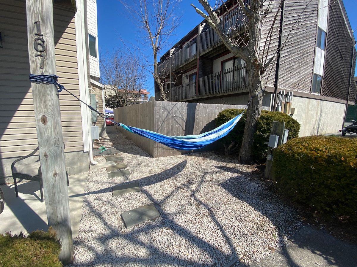 Kondominium yang baru direnovasi!! - Pemandangan air. Saksikan lalu lintas perahu. - Balkon tertutup dengan tempat duduk yang nyaman. - Sofa Comfy LoveSac. - Berjalan ke trotoar atau pantai - 15 menit. - Berjalanlah ke taman hiburan Jolly Roger. - Matikan dermaga komunitas di bawah unit. - Dekat dengan tempat makan dan belanja. - Dapur kecil untuk memasak makanan. - Wifi Cepat dan TV Streaming. - Rumah yang Disediakan Sepenuhnya. Seprai bersih, handuk, tisu toilet, handuk kertas & banyak lagi!