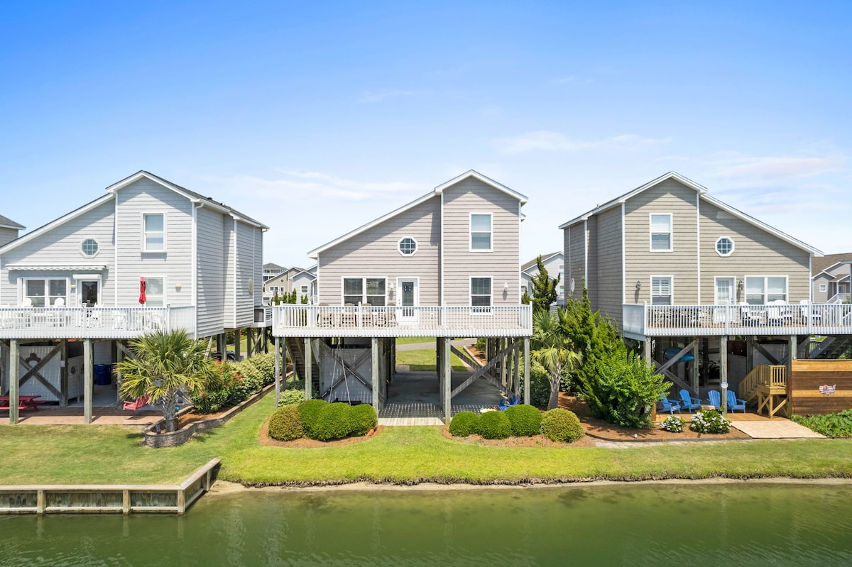 7 - Bedroom 3rd Row Beach House dengan Wrap around porches di setiap tingkatannya. Pemandangan indah ke jalur air dan laut antar pesisir. Gameroom/Arcade/ruang film dan akses pantai dekat 1 -2 menit berjalan kaki. Kolam renang pribadi yang bagus dengan tiki bar/TV/kulkas/wastafel di halaman belakang dengan area hijau dan shuffleboard. Pemanggang Gas dan Arang dan Kulkas ekstra di area garasi untuk menyimpan makanan/minuman dll. Akses Lift Pribadi ke lantai. Akses rumah nirkabel. TV,Roku, akses pemutar DVD di masing - masing kamar tidur
