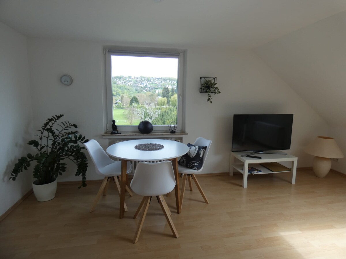 Liburan pedesaan yang santai di Siebengebirge atau masa inap bisnis yang menyenangkan di apartemen studio kami yang indah dan cerah (sekitar 50 m²) di lingkungan yang tenang dengan pintu masuk terpisah dan tempat duduk luar ruangan. Apartemen ini berlokasi di daerah pegunungan Königswinter di kaki Ölberg dan merupakan titik awal yang sempurna untuk hiking. Tempat ini ideal untuk keluarga kecil, pejalan kaki, atau pesepeda. Ada berbagai wisata ke area sekitarnya atau area sekitarnya.