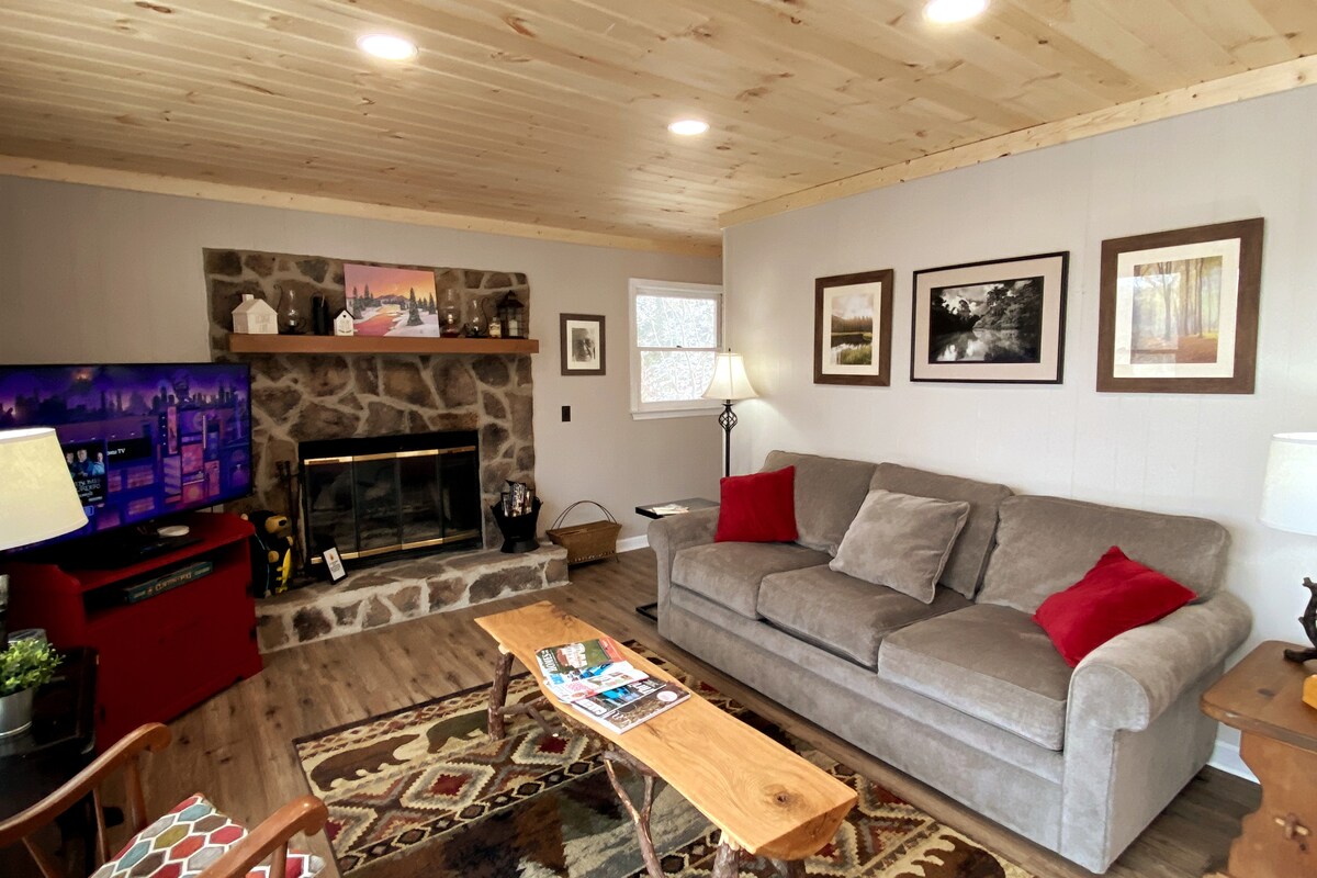 Terletak di Sky Valley Resort dan Country Club yang indah, kabin/pondok kami yang telah direnovasi sepenuhnya dan menawarkan nuansa pedesaan rumah pertanian. Rumah ini memiliki pemandangan 360 derajat dengan pembungkus di sekitar teras, semua perabotan baru, pencahayaan yang luar biasa, 3 TV pintar, dan banyak fasilitas. Perhatian terhadap detail dengan cinta dimasukkan ke dalam rumah kami. Kabin mudah dijangkau dari jalan utama. Kami memiliki ruang tamu konsep terbuka, perapian listrik, dua kamar mandi lengkap, 2 kamar tidur besar dengan lemari yang luas & tempat tidur sofa berukuran queen.