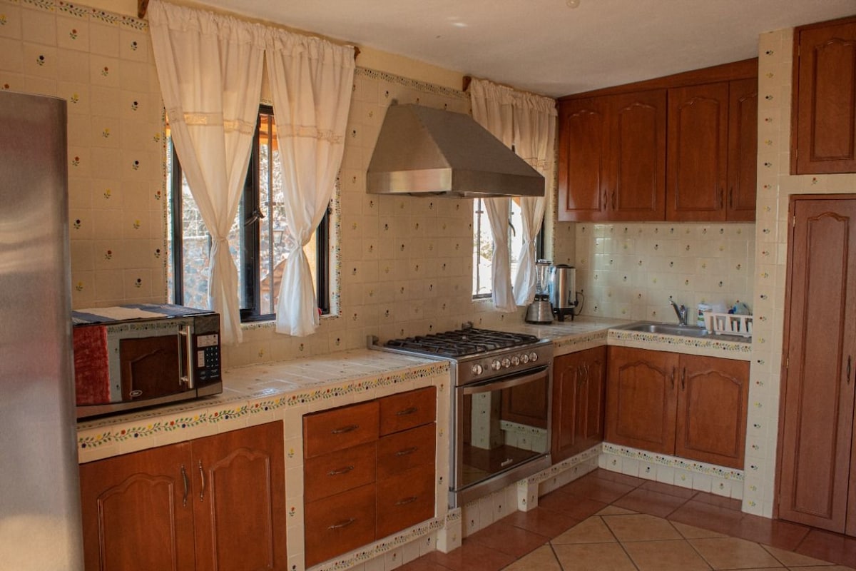 Kami ingin berbagi ruang istirahat pedesaan yang indah ini sehingga Anda bisa mengisi ulang energi di tempat yang penuh dengan pepohonan dan harmoni. Terletak di kota Santa Maria Ahucatitlan dan 5 menit dari Cuernavaca. Rumah ini memiliki tempat parkir untuk 3 mobil, taman yang sangat luas, dan barbekyu yang bagus. Akomodasi untuk 7 orang dengan 2 tempat tidur double, 1 queen dan 1 single. Dapur dan peralatan makan lengkap. - Pesta atau pertemuan tidak diterima. - Hewan peliharaan sedang di ruang belakang