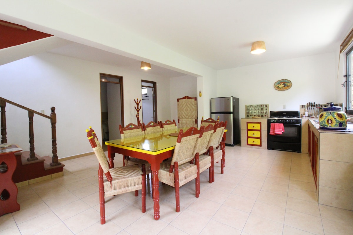 Rumah yang indah di pusat kota Malinalco. Tempat yang tenang dan aman, dengan fasilitas ideal untuk liburan akhir pekan di luar CDMX. Properti ini memiliki kolam renang pribadi, dengan sistem selang tenaga surya yang menjaga air pada suhu ruangan. Untuk pengalaman yang lebih nyaman, kami menawarkan opsi boiler dengan biaya $850 MXN per hari, yang tersedia sesuai permintaan.