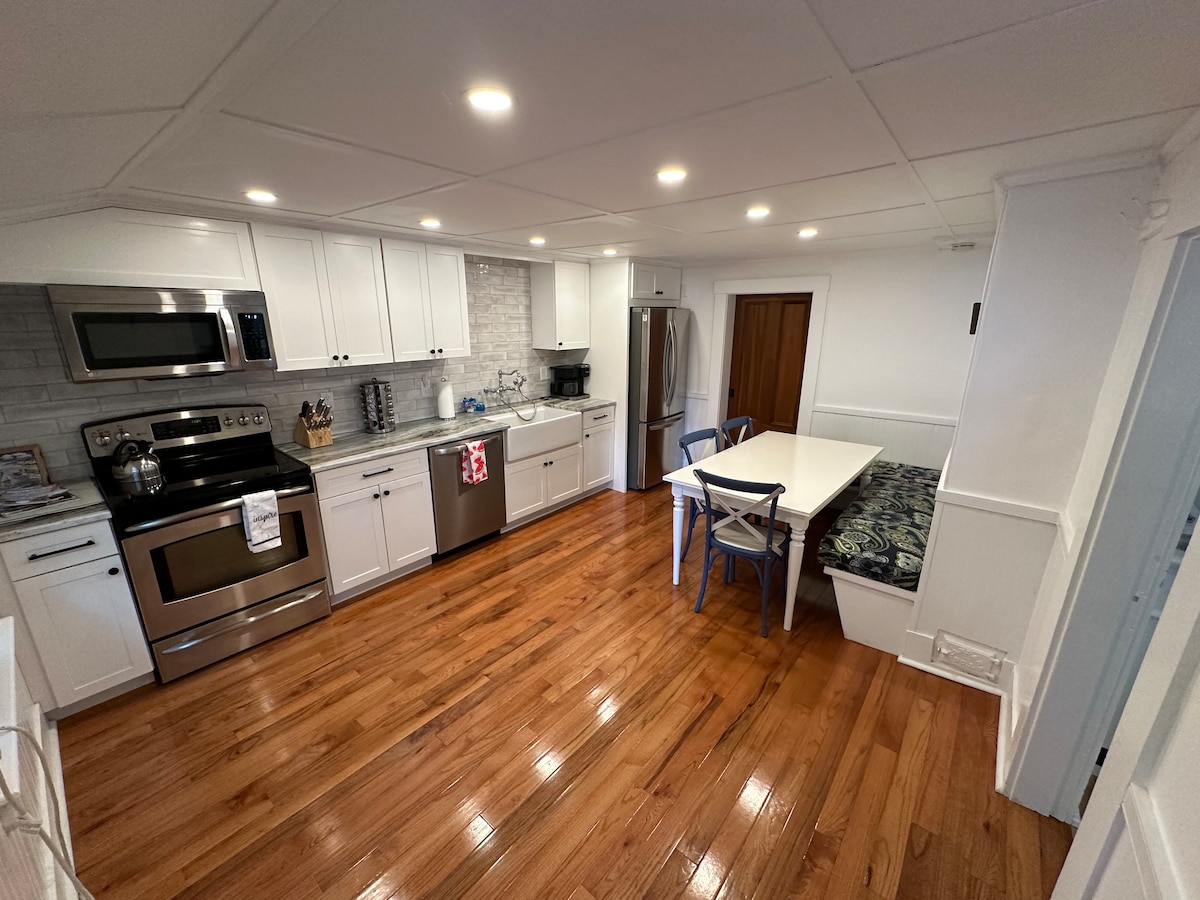 The Lower Village Lofts *North* adalah apartemen studio besar yang baru direnovasi yang berada di pusat aksi - hanya beberapa langkah dari Dock Square (pusat kota Kennebunkport) dan 1/2 mil ke pantai! Unit ini memiliki dapur baru yang lengkap, semua desainer baru dan perabotan kelas atas, dan pembatas kamar built - in khusus lengkap dengan perapian listrik, lemari pakaian, dan smart TV 50". Area kamar tidur memiliki tempat tidur king baru dengan tempat tidur mewah, nuansa hitam, dan smart TV tambahan.