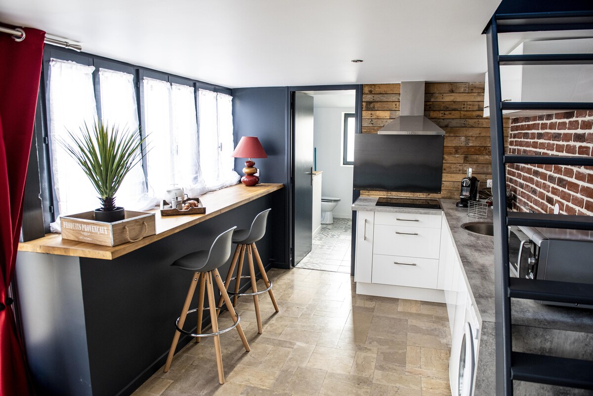 Saint Martin des Vignes Di ketinggian desa tua Montigny Lengrain yang menghadap lembah Aisne, nikmati rumah yang baru direnovasi, nyaman dan tenang untuk 2 hingga 3 orang (Tempat tidur 160x200 dan tempat tidur sofa). Ini akan menjadi tempat ideal untuk mengisi ulang baterai Anda, bekerja dari jarak jauh, atau menemukan warisan lokal (Pierrefonds, Villers - Cotterêts, Compiègne, Soissons). Bagi pecinta hiking, pondok ini terletak di rute GR 12 dan akan menjadi awal dari banyak jalan kaki.