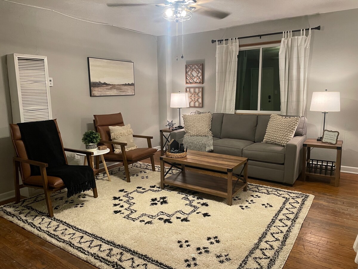 Datanglah beristirahat dan meremajakan diri untuk penginapan Stillwater Anda! Berlokasi strategis hanya 4 menit dari kampus Oklahoma State dan 2 menit ke Downtown Stillwater. Nikmati tempat tidur berukuran king size yang nyaman. Bersantailah dan masuklah ke layanan streaming Anda di Roku kami, dengan akses ke 1 gig wifi. Masak di dapur bergaya rumah pertanian kami yang lengkap, nikmati kopi pagi Anda di teras kayu cedar baru. Mesin cuci dan pengering lengkap di lokasi. Kami senang menerima Anda sebagai tamu!