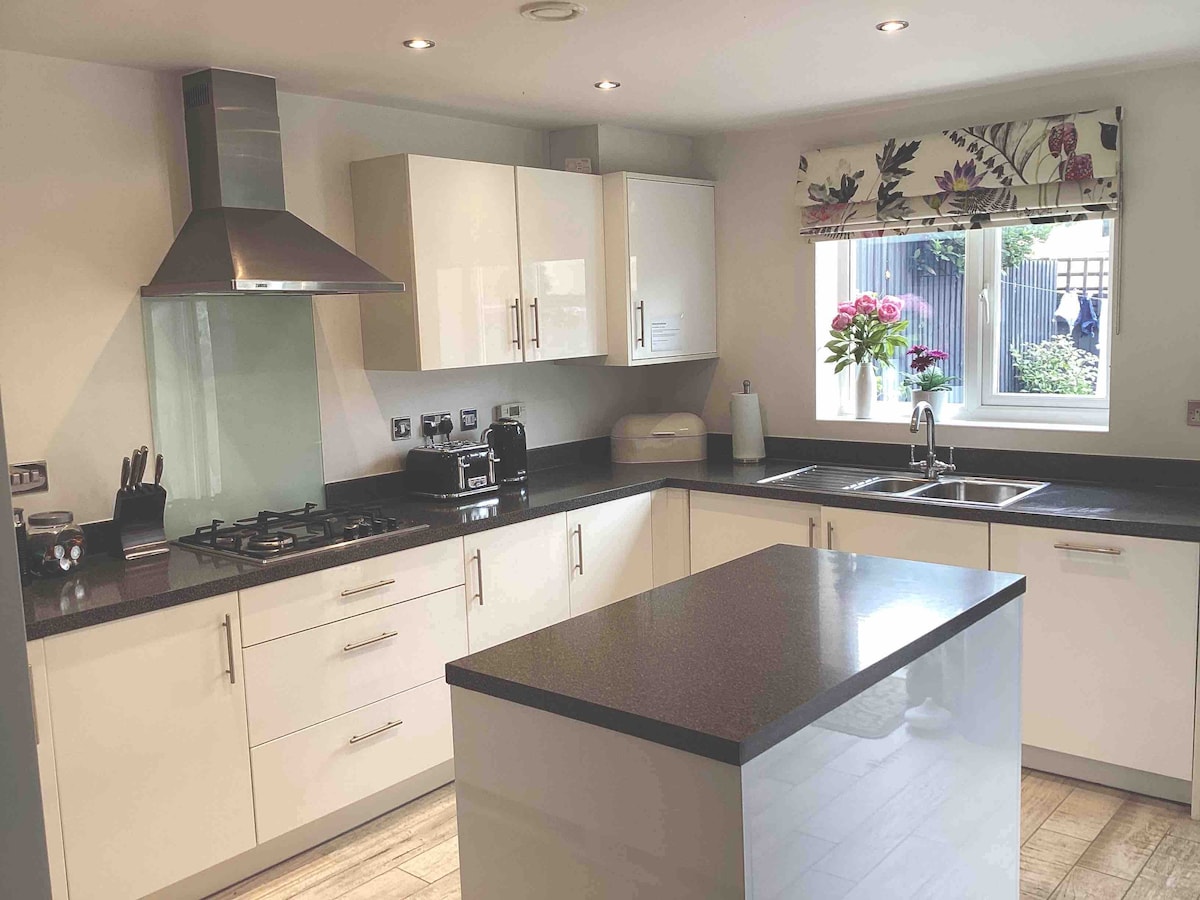Townhouse 3 kamar tidur modern yang ringan dalam pengembangan pribadi yang terletak dalam beberapa menit berjalan kaki ke pusat kota. 3 kamar tidur ensuite ditambah ruang ganti di lantai bawah. Bonus tambahan dari 2 tempat parkir pribadi. 2 TV pintar layar besar. Termasuk Wi-Fi. Terletak di area ideal untuk berjalan kaki ke Burghley House atau bepergian dan menjelajahi desa - desa lokal dan tempat - tempat menarik seperti Rutland Water. Sayangnya kami tidak cocok untuk anak kecil dan kursi roda karena tangga.