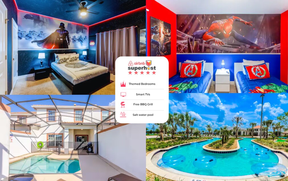 Selamat datang di liburan keluarga terbaik Anda di dekat Disney! Apartemen 3 kamar tidur yang luas ini berlokasi sempurna hanya beberapa menit dari keajaiban Disney. Dirancang dengan mempertimbangkan keluarga, tempat ini menampilkan dua kamar tidur anak - anak bertema indah - petualangan Toy Story dan liburan tropis yang terinspirasi Moana - dijamin untuk menyenangkan anak - anak kecil. Nikmati akses penuh ke taman air yang menakjubkan, termasuk gratis, membuat setiap hari terasa seperti liburan. Baik Anda bersantai setelah seharian di taman atau bermain air