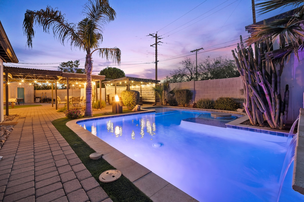 Kolam Renang Pribadi + Bak Mandi Air Panas di Rumah di Old Town Scottsdale