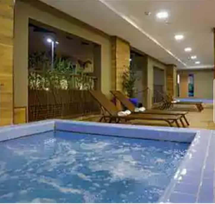 Kami berlokasi 300 meter dari Thermas dos Laranjais Park, Anda bisa berjalan kaki atau melalui transfer yang tersedia sebagai rasa hormat! Penginapan termasuk: Vallet Parkir (1 tempat) 1 tempat tidur King 1 single bed 1 auxiliary bed 1 Sofa bed (double) Microwave (tanpa peralatan makan) Kulkas mini Pengering rambut Seprai Wifi Smartv & Seprai mandi Handuk Kolam Renang Gym. Area bioskop mini anak Layanan kamar permainan *Makanan belum termasuk dalam sewa ini .*