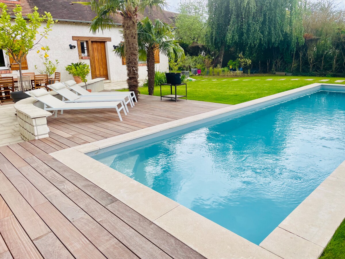 Rumah baru yang besar, tenang dan hangat di tengah alam dengan tenis dan kolam renang (4,5 m x 9 m garam) bersama tersedia. Check-in mandiri dan ruang tamu besar dengan kompor dan pemandangan hutan. Di pusat Sologne, dekat dengan Chambord (40 km), Basilika Notre-Dame de Cléry (10 menit) dan kastil Loire yang indah lainnya (Meung-sur-Loire dan La Ferté-Saint-Aubin 20 menit)