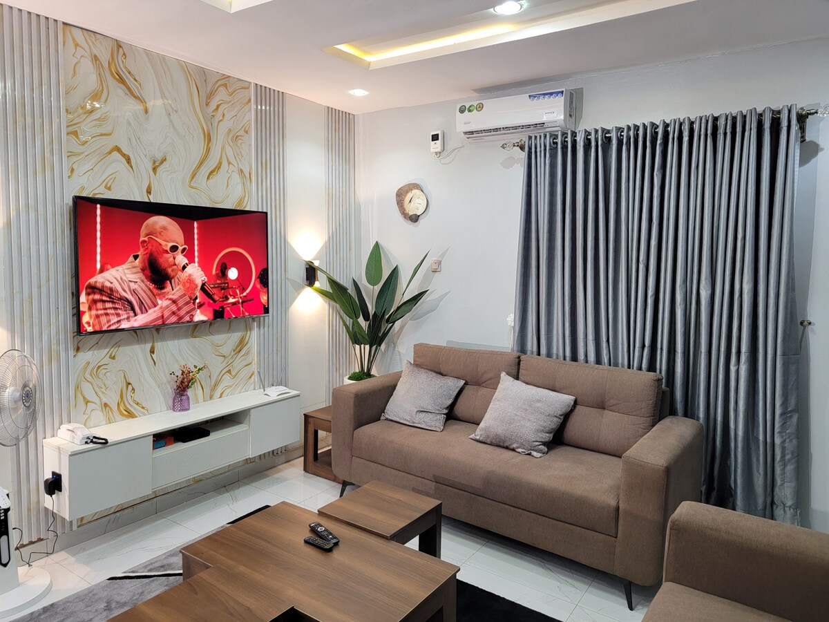Bawa seluruh keluarga ke tempat luar biasa ini dengan banyak ruang untuk bersenang - senang. Perumahan yang aman, terpusat, sangat dekat dengan pusat perbelanjaan dan bioskop, satu jam dari bandara internasional muritala Lagos, siaga tenaga surya, wi - fi, DSTV, parkir gratis, dll.