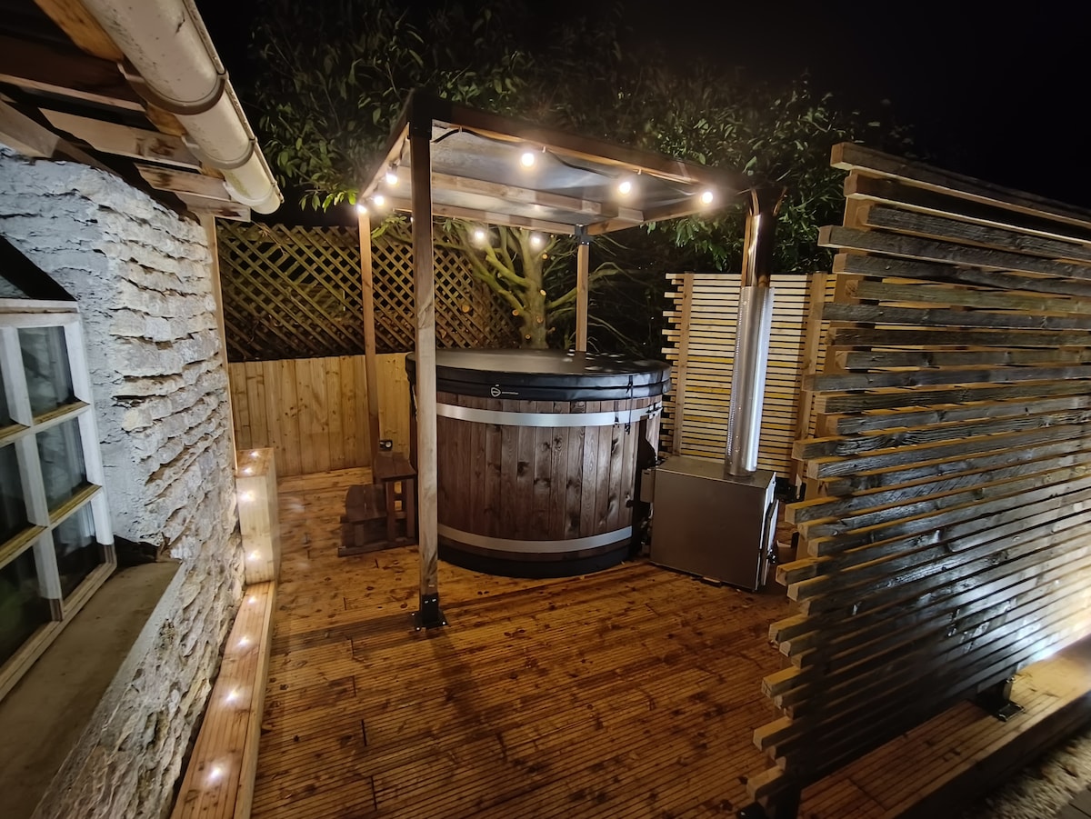 Pondok dengan kolam renang dan bak mandi air panas