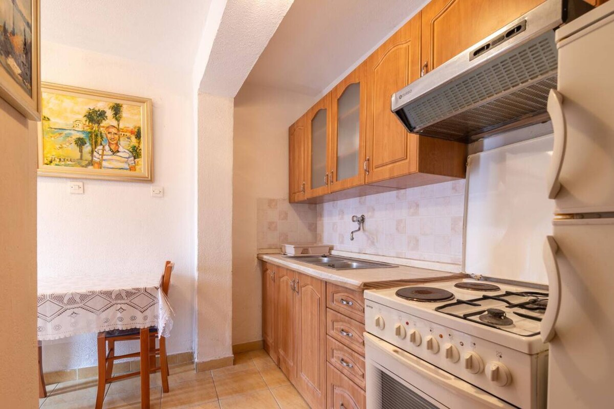 Apt. "Olive ": Apartemen studio untuk 2 + 1 orang dengan teras dan pemandangan yang indah. Apartemen ini memiliki tempat tidur double dan sofa, meja, dan kursi yang dapat diperpanjang untuk setiap orang, peralatan dapur, panci, peralatan makan, dll. Kulkas dan kompor listrik dengan 2 hotplate digunakan untuk penyimpanan dan persiapan makanan. Kamar mandi dengan toilet, pancuran mandi, dan handuk mandi tersedia. Jarak ke pantai batu adalah 100m dan 250m ke pantai kerikil. Parkir dipesan tanpa mengenakan biaya tambahan! Wi - Fi gratis! AC!