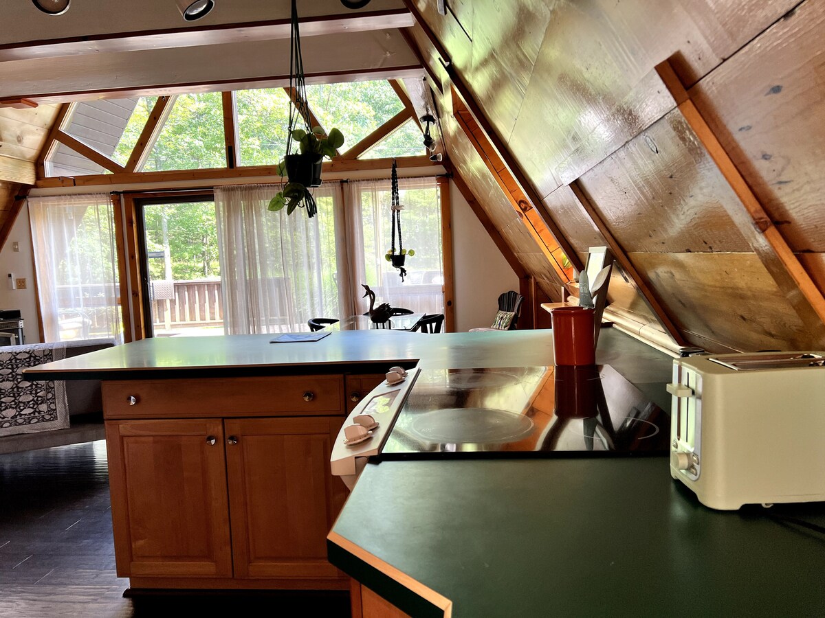 Tempat peristirahatan A-Frame yang menawan ini berlokasi di kawasan perumahan berhutan antara Saugerties dan Woodstock akan menyambut Anda dan menghangatkan jiwa Anda dengan pesonanya. Menampilkan 2 kamar tidur, masing - masing dengan Tempat Tidur Queen, dan sofa yang dapat dilipat menjadi Tempat Tidur Penuh, ada ruang yang cukup untuk 4 orang. Namun, ini juga merupakan tempat liburan yang tenang bagi individu atau pasangan. Tempat peristirahatan kreatif yang menginspirasi, rumah ini memiliki pemandangan yang indah, dan piano listrik. Tenang tapi 10 menit dari restoran hebat! 11 menit ke HITS, 30 menit ke Hunter Mountain.