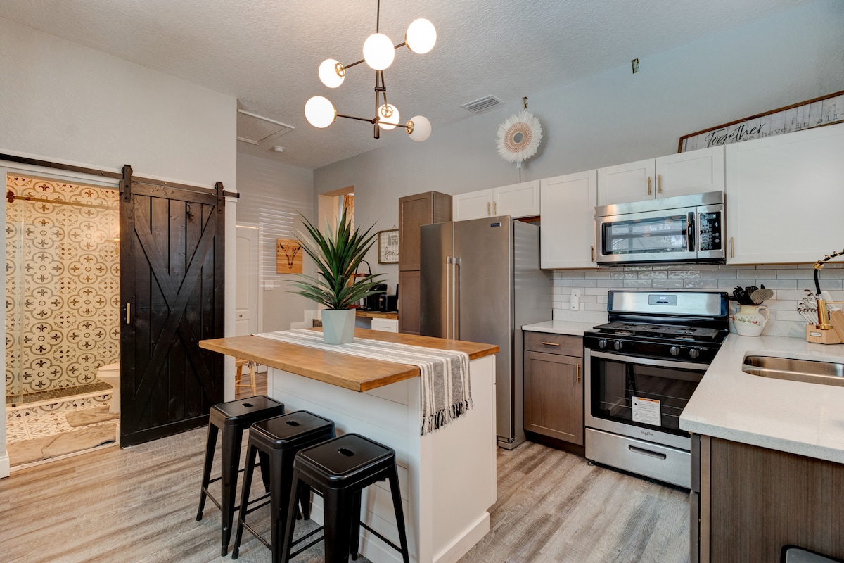 Rumah kereta lantai dua ini adalah semua milik Anda. Terletak di jalan yang tenang di tengah - tengah rumah bersejarah. Berjalan kaki ke Stetson dalam 5 menit. Downtown DeLand berjarak 15 menit berjalan kaki. Dua kamar tidur, dapur lengkap, akses pribadi Anda akan sangat cocok untuk liburan bagi Anda dan tamu Anda. TV layar datar 42"dengan kabel dan Amazon Prime tanpa iklan. Wifi. Tepi jendela lantai dua menghadap ke arah tanaman tropis yang indah. Tempat untuk bekerja atau bersantai. Kami menantikan pengalaman menginap Anda bersama kami.