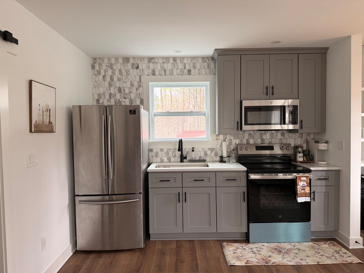 Hanya beberapa langkah dari keaktifan pusat kota Carrboro, apartemen ini terasa seperti suaka yang terletak di lingkungan alami. Ruang yang lebih kecil dan dirancang dengan cermat, kayu alami, dan koneksi ke alam meremajakan jiwa, memungkinkan seseorang hadir dengan cara yang lebih lambat, santai, dan lembut. Lantai atas, kamar tidur loteng memiliki tempat tidur queen, meja, dan banyak jendela yang membawa sinar matahari dan pemandangan pepohonan. Lantai bawah adalah ruang tamu kecil, dapur, ruang makan, dan kamar mandi.
