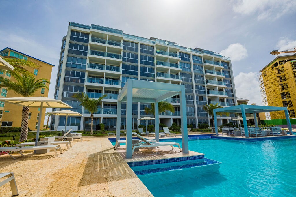Temukan tempat liburan terbaik dalam pengembangan kondominium mutakhir kami, memadukan nuansa pulau yang tenang dengan kehidupan perkotaan modern, dan keamanan 24/7 untuk ketenangan pikiran. Rasakan pemandangan laut, pelabuhan, dan matahari terbenam yang menakjubkan dari kondominium kami yang lengkap, berlokasi strategis di pusat kota Oranjestad, di seberang Renaissance Hotel yang ikonis dan dekat dengan tempat-tempat menarik. Hanya 5 menit berkendara ke Eagle Beach dan Surfside Beach yang terkenal, dan hanya 10 menit dari Palm Beach yang semarak.