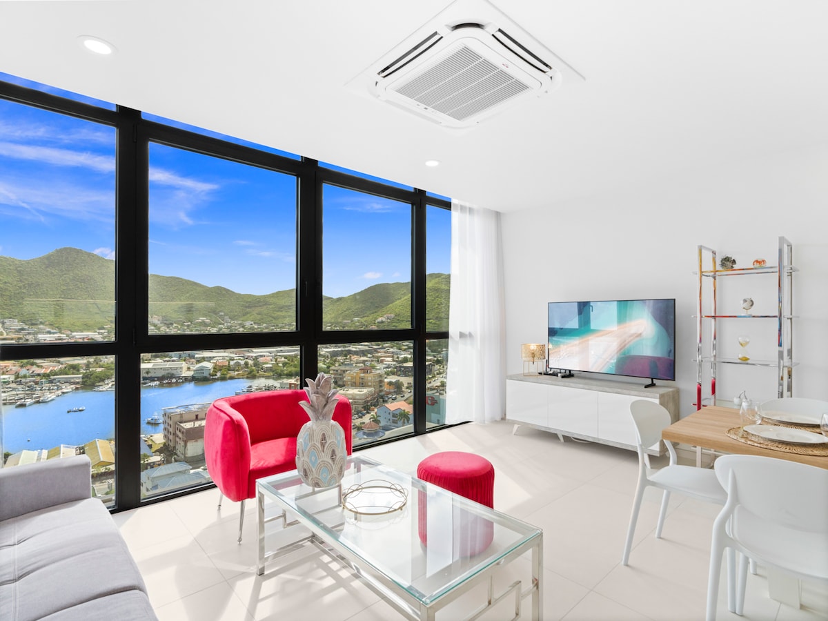 Studio pribadi dengan teras kecil, terletak di atas bukit hanya 5 menit berjalan kaki dari desa Grand Case. Dapur lengkap, AC, Wi-Fi, tempat tidur nyaman. Akses ke kolam renang infinity bersama (dengan 2 kamar lain di vila). Check-in mandiri, bantuan lokal, generator, dan tangki air memastikan masa inap bebas khawatir. Lokasi ideal untuk menjelajahi Grand Case dengan berjalan kaki.