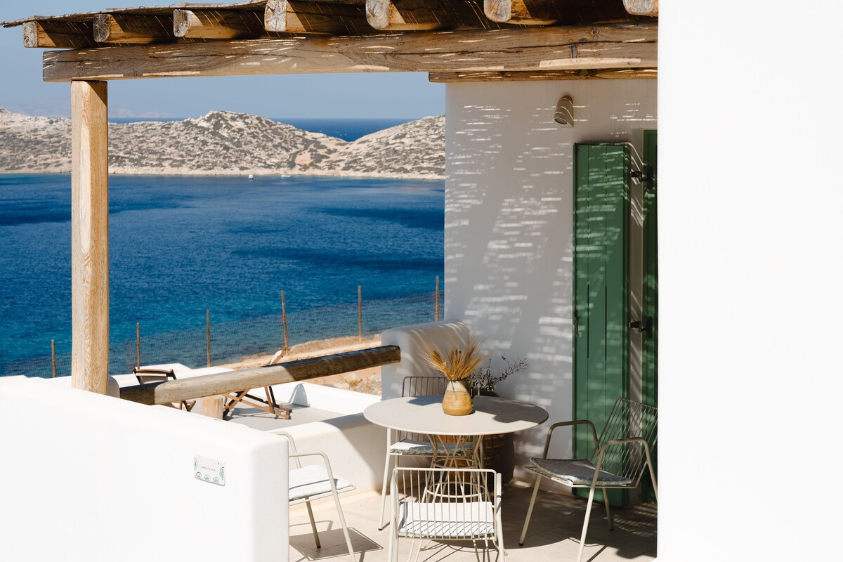 Welcome to Amorgiani Gi, a luxurious seafront rental complex with unparalleled view! The complex consists of a Cycladic style house of 85 sqm and of two separate studios of 42 sqm and 47 sqm respectively, with spacious private outdoor areas for your stay. The panoramic view of the horizon of the Aegean Sea guarantee a unique experience combined with privacy and calmness, being only 500m away from the village in Aegiali Bay. An ideal choice for idyllic moments of relaxation in a private area.
