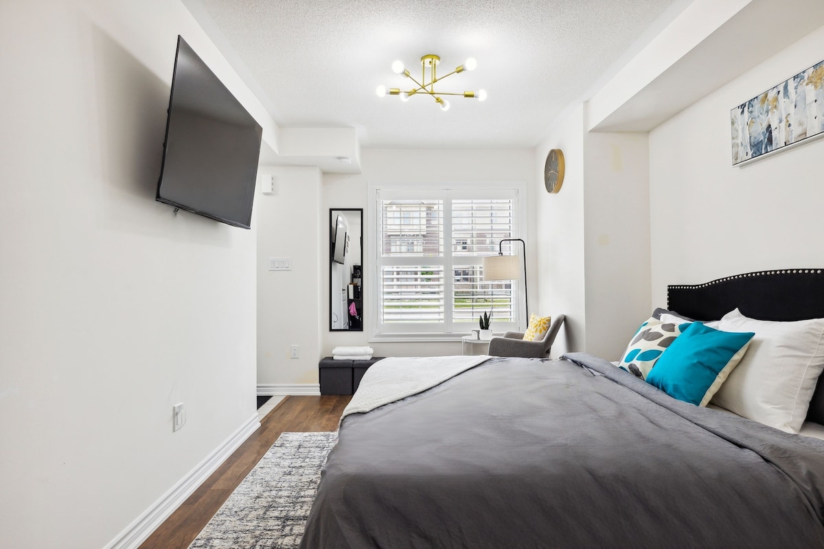 Cozy and private 1-bed studio, ideal for short or extended stays, well-equipped for convenience and relaxation. ✔︎ Spacious private suite with full Bath ✔︎ 55-inch 4K TV with Netflix, Prime, Crave, Fibe TV, YouTube, etc ✔︎ Super Fast WiFi ✔︎ Self check-in ✔︎ Workstation ✔︎ 5 mins drive - 401, Downtown, Malls, Grocery, Pharmacy, Restaurants, Cineplex. ✔︎ Free Parking on driveway ✔︎ In Unit Washer & Dryer ✔︎ Kitchenette - Fridge, Microwave, Kettle, Toaster, Coffee maker, utensils & supplies.
