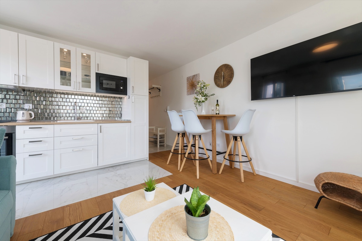 Akomodasi unik ini didekorasi dengan gaya yang tidak biasa. Apartemen studio ini terdiri dari dapur dengan ruang makan dan ruang dengan tempat tidur. Kamar mandi kecil dipisahkan oleh pintu. Studio ini baru direnovasi dan dilengkapi sepenuhnya, ber-AC, dan memiliki internet WiFi gratis. Jika Anda membutuhkan tempat parkir, Anda harus memesannya saat memesan apartemen (terletak di garasi bawah tanah stasiun bus), dan Anda akan mendapatkan kartu untuk penggunaan gratis.