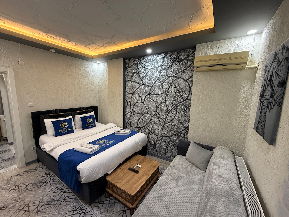 Semua apartemen kami disetujui oleh Kementerian Pariwisata. Ada detektor asap dan alat pemadam api. Apartemen ini berada dalam jarak berjalan kaki ke banyak tempat di pusat kota, terutama Jalan Arapşükrü, masjid, makam, alun-alun kota Tophane, dan Zafer Plaza. Apartemen kami luas, Anda bisa merasakan kenyamanan rumah Anda sendiri. Semua barang di bisnis kami baru. Air panas, wifi, sandal sekali pakai, semua TV memiliki internet. Seprai dan handuk diganti dengan hati-hati saat check-out tamu. Tersedia AC ganda.