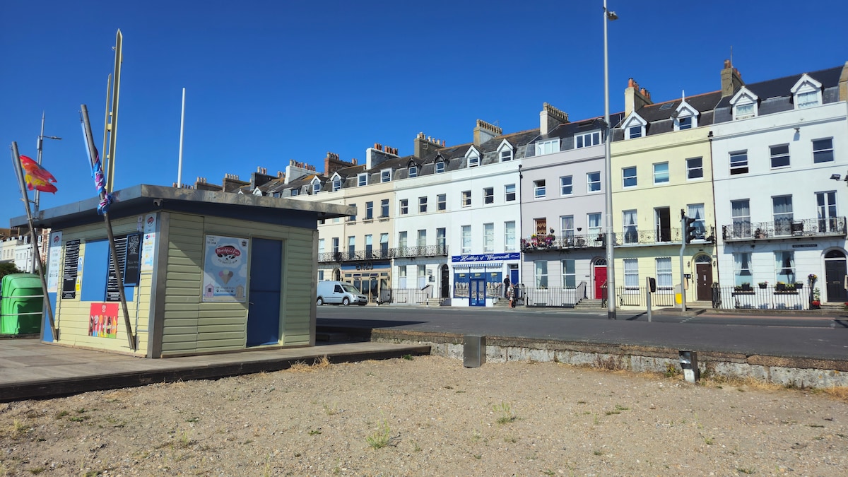 ***Flat one the Beaches is in a central position & can be noisy in the evenings especially at the weekends***Recently converted Grade II listed building on Weymouth seafront. The apartment is one of four located off a private inner courtyard on the first floor. well equipped apartment across the road from Weymouth’s award winning beach and nestled a stones throw away from Weymouth town with its great choice of harbour side restaurants and bars.