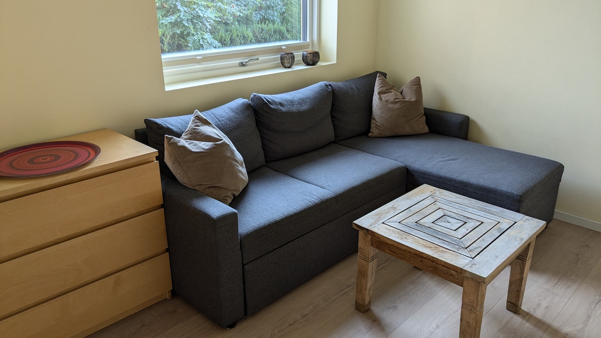 Nikmati apartemen satu kamar tidur modern dan berstandar tinggi di lantai dasar rumah. Unit pribadi yang menghadap taman ini menawarkan ketenangan dan kenyamanan hanya 5 menit berjalan kaki dari stasiun metro. Dengan akses mudah 15 menit ke pusat Oslo, tempat ini sangat cocok untuk menjelajahi kota sambil menikmati tempat peristirahatan yang tenang. Ideal untuk wisatawan tunggal atau pasangan yang mencari penginapan bergaya dan sentral dengan jaringan transportasi yang luar biasa dan suasana pribadi yang nyaman. Check-out terlambat dimungkinkan, tetapi selalu sesuai dengan permintaan.