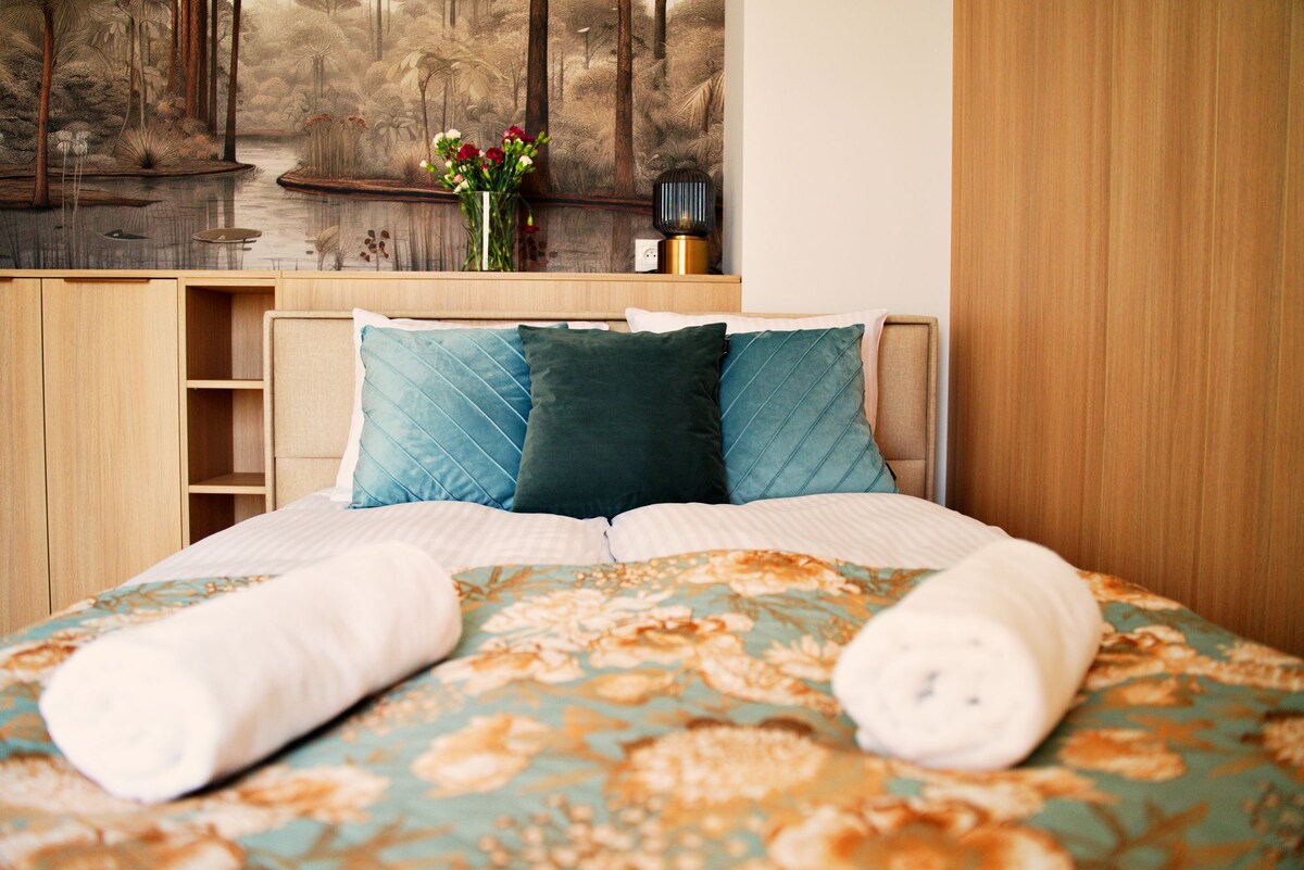 Apartemen Navy (34m²) - gaya modern dan penuh kenyamanan! Interior terang dengan AC, tirai luar ruangan, dan kelambu memberikan kondisi sempurna untuk bersantai. Apartemen ini menawarkan tempat tidur 160x200 dan tempat tidur sofa, dapur lengkap (pembuat kopi, ketel, kulkas, microwave) dan kamar mandi pribadi dengan shower. Anda juga akan menemukan setrika, papan setrika, dan pengering rambut di kamar Anda. Di area umum: mesin cuci dan mesin pengering. Parkir terpantau dan berpagar