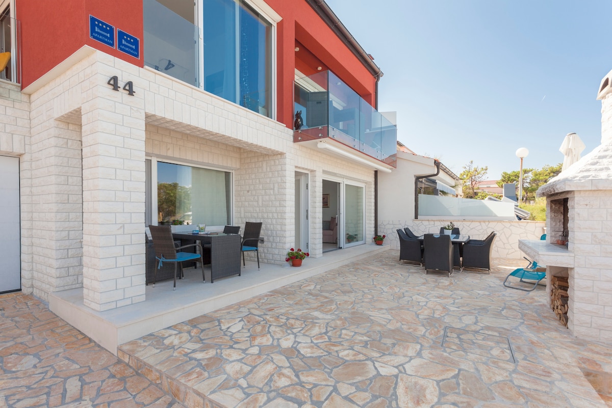 Summary:This brand new house is situated in quiet part of island Vir. Our property have everything you need to spend a perfect holiday. the beach is only 40 m away from your apartment and it is surrounded by pine trees our garden there is a barbecue for our guests. We have a free wifi and a parking place for all our guests.Our modern equipped apartments offer you everything you need for a pleasant stay.