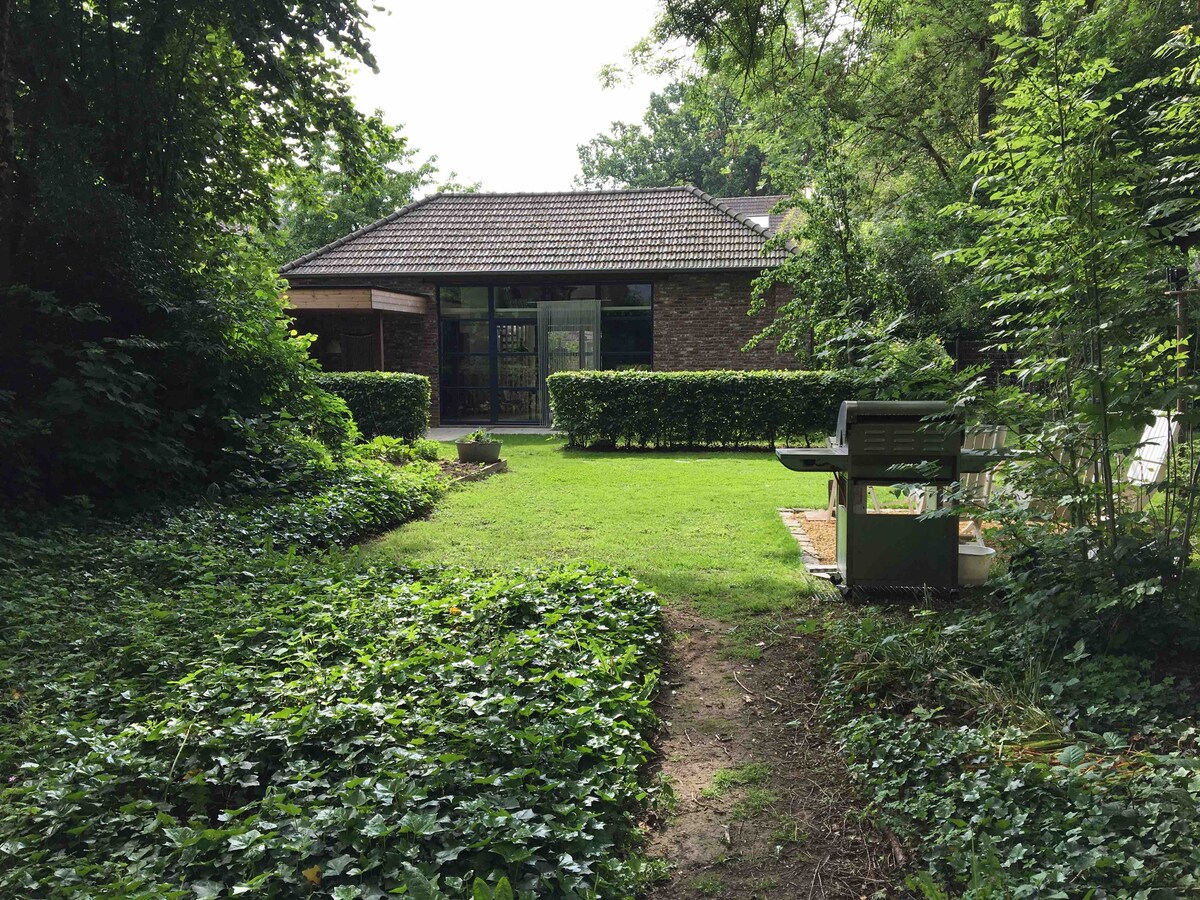 Anda ingin benar - benar bersantai dan datang sendiri? Apakah Anda ingin tinggal dekat dengan alam di tempat yang membuat Anda benar - benar merasa seperti di rumah sendiri? Anda ingin bangun dengan pemandangan luas dan pemandangan rusa? Maka Anda pasti akan merasa seperti di rumah di sini. Bersantai di salah satu area duduk di taman atau hiking/bersepeda di hutan Limburg. Dekat dengan Sentower (5km) & Elaisa Welness (13km). Kopi & teh tersedia. Dapur berfasilitas lengkap dengan mesin cuci piring