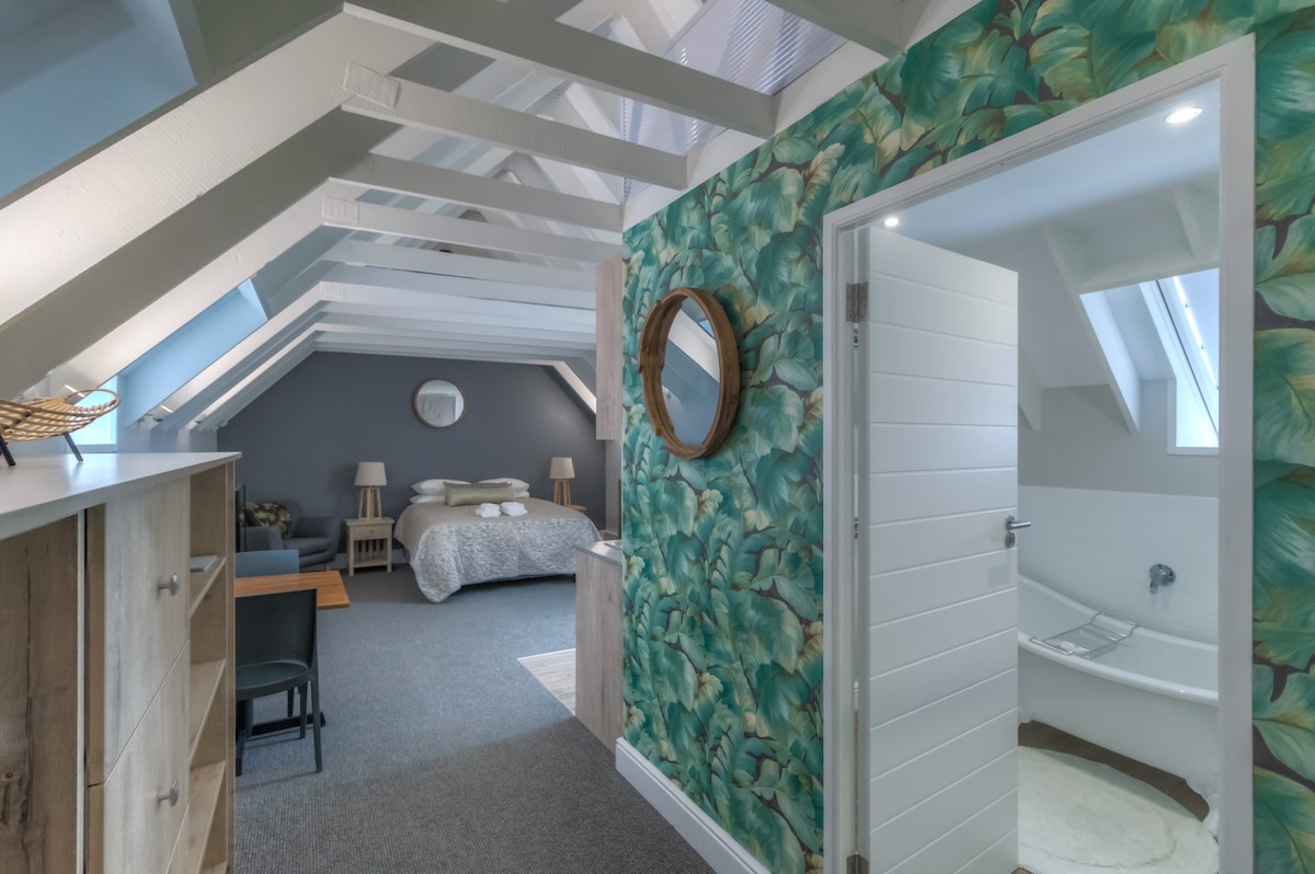 Liburan yang sempurna, untuk akhir pekan yang romantis, bulan madu, atau untuk pengunjung wineland solo. Loteng ini telah menikmati fitur rumah pertanian bergaya, dengan balok yang terbuka. Karya seni yang dipilih dengan cermat dan furnitur unik, menghadirkan sentuhan dekadensi. Tempat peristirahatan ini terletak di perkebunan anggur Bartinney, di mana Anda bisa berjalan - jalan melalui tanaman merambat, menikmati pemandangan pegunungan yang tak tertandingi.