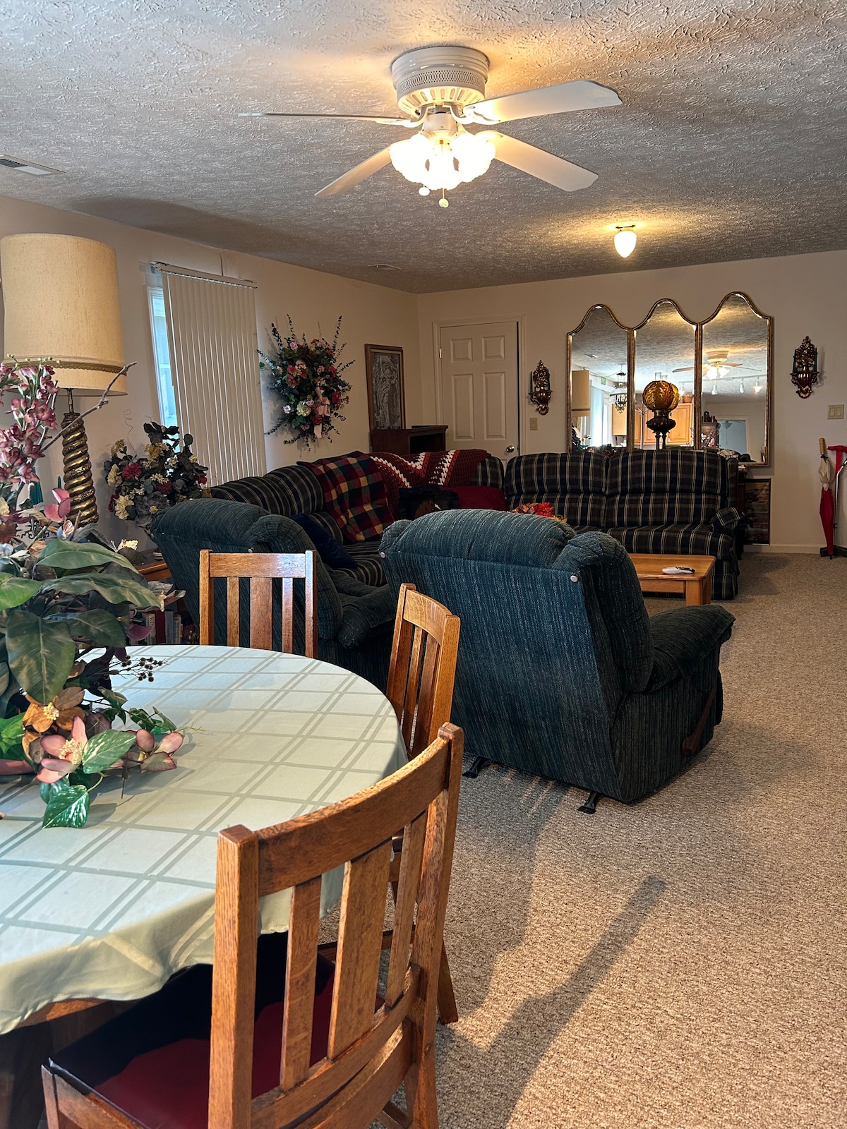 Relax with the whole family at this peaceful place to stay. The back patio provides gorgeous sunsets and wildlife views. The house is on a hobby farm with cows and horses that we ask visitors not to feed. There is a pull out couch that makes a full size bed as well. It is located in central Ky with easy access to Cincy, Lexington, Louisville, Frankfort,Georgetown etc…This is in a country setting which is very quiet and peaceful. The house has a ramp for wheel chair accessibility.