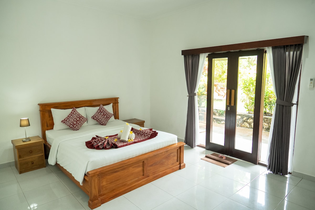 Kamar Standar 4 - Kamar yang nyaman namun mewah ini mengundang Anda bersantai di kolam renang pribadi dan oasis taman Anda sendiri. Desain elegan memadukan minimalisme tropis dan keindahan alami, menggunakan bahan-bahan alami dan palet lembut dan bersahaja untuk menciptakan energi yang harmonis. Atap alang-alang menyaring cahaya dengan indah sekaligus menjaga interior tetap segar dan menenangkan. Baik Anda bersantai di dek kayu atau mengapung di kolam renang, Kamar 4 menawarkan koneksi yang mudah ke alam.