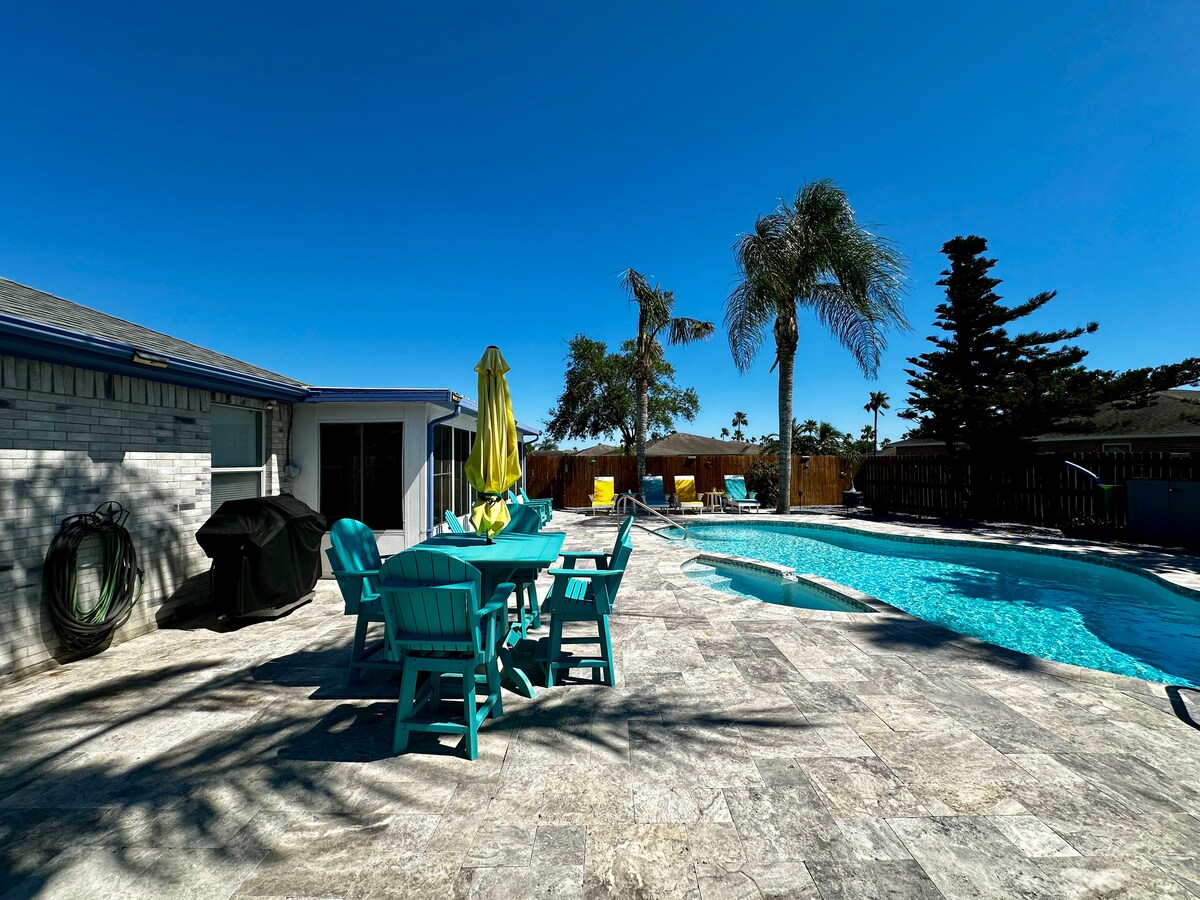 Paradise Palms adalah tempat beristirahat yang damai di bawah dedaunan palem yang bergoyang menghadap Laguna Madre Bay. Air terjun & air mancur mengalir menciptakan suasana santai saat bersantai di tepi kolam renang. Rumah kami memiliki 3 kamar tidur & 3 kamar mandi lengkap dan bisa menampung hingga 14 orang, sangat cocok untuk keluarga besar atau liburan bersama teman-teman. 2 dapur memungkinkan semua juru masak memiliki ruang untuk berkreasi. Nikmati hari di pantai dan bersantai setelahnya di kolam renang pribadi & bak mandi air panas atau bermain ping - pong, corn - hole, foosball & permainan halaman x - large.