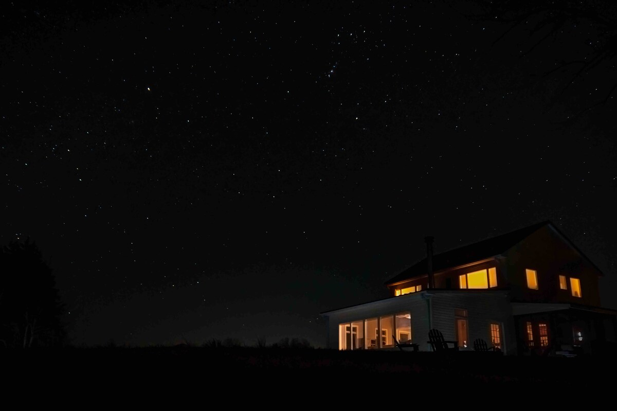 Hay Loft terletak di tengah - tengah 43 hektar yang indah, menghadap peternakan jerami kerja kami dengan pemandangan Pegunungan Shenandoah yang menakjubkan. Kami berada di dekat restoran, kebun anggur, barang antik, medan perang, resor golf, resor ski, dan gua. Suite pedesaan/luxe yang luas dengan perapian gas; tempat tidur king dan kamar mandi dengan pancuran ubin, pembuat kopi Keurig, microwave, oven pemanggang roti, kulkas kecil, tanpa freezer, piring dan pemanggang gas luar ruangan dan perapian gas dalam ruangan. Perapian luar ruangan.