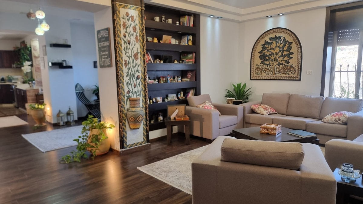 Lupakan kekhawatiran Anda di tempat yang luas dan tenang ini. Rumah Reem terletak di desa kecil di sebelah barat Ramallah, dengan pemandangan matahari terbenam yang fantastis ke arah barat, di mana pada hari - hari beruntung Anda bisa melihat perairan mengkilap laut Mediterania jauh di tepi pantai Yafa, selain matahari terbit. Reem adalah Penyanyi dan pecinta Palestina, dan dia akan menjadi tuan rumah Anda, di rumahnya sendiri, di mana Anda bisa mencicipi beberapa makanan dan minuman Palestina, dan menikmati musik Palestina dan dunia. Ahlan wa Sahlan