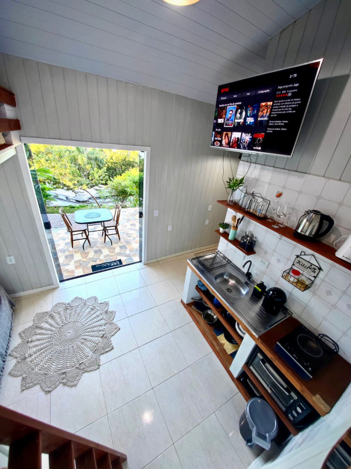 Hanya 13 km pusat Dengan pemandangan pantai dan pegunungan yang indah. Pantainya ada di sana, hanya dua menit berjalan kaki. Tempat ini memiliki kamar mandi bergaya motor, rumah mikro. Mezzanine. 250Mega Internet dengan Netflix, Anda juga bisa mencerminkan ponsel Anda di TV. Mudah diakses, Rodovia Br 101 kurang dari 1Km. Dekat pantai terkenal lainnya seperti Guarda Embaú 23 Km, Praia Sonho 13 Km, Floripa 30Km. Cachoeira Jarrão 4,5 Km. Dengan toko roti dan toko kelontong di dekatnya.